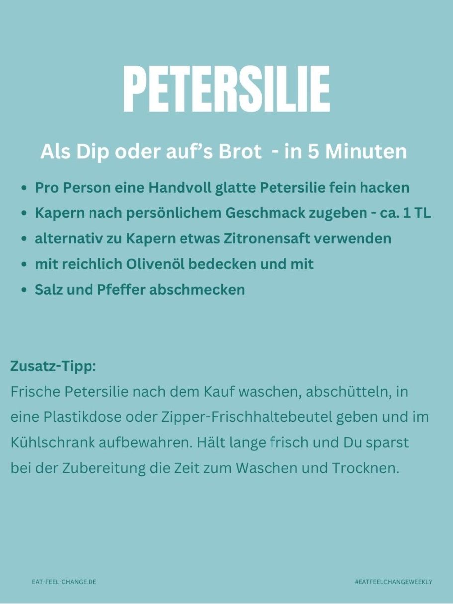 Die Challenge für die kommende Woche ist diesmal, täglich eine Handvoll Petersilie zu essen.